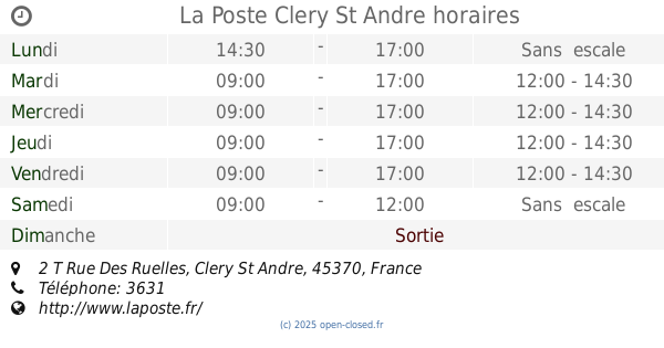 It is also possible to : Modifier ces HEURES D'OUVERTURE of Branche La Poste Dans Clery St Andre, 2 T Rue Des Ruelles,